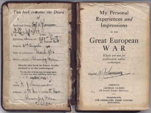 The World War I diaries contain selected days of Konnie's diaries of his life in the Canadian Army in England and the Royal Flying Corps in Egypt. There are almost-daily entries for most of 1917 and 1918. Excerpts from his flying logbook records are also included in the diary pages at the appropriate dates.